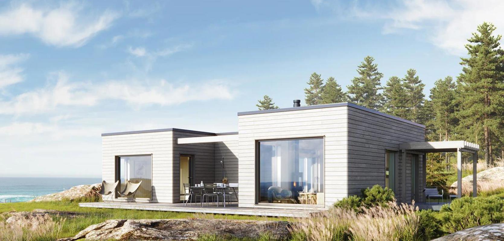 Hva med å nyte morgenkaffen ute? I den åpne stue- og kjøkkenløsningen er det direkte utgang fra kjøkkenet til en uteplass i øst med en overbygd pergola. Kjøkkenet har godt med lysinnslipp og god oversikt i alle retninger i hytta, med naturlig lys som strømmer inn fra gangpassasjen i vest, ut mot pergolaen i øst, ut mot inngangspartiet i nord, og selvfølgelig ut mot atriumet i sør.